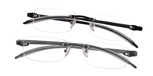 Glassesshop 2 Pack Clear Rimless Reading Glasses Super lightweight and flexible TR90 Material (1.50, 2 Pack)-Black and Gray