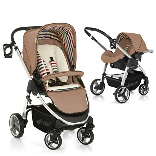 Hauck Lacrosse Shop'n Drive 6-teiliges Kinderwagen Set Das Lacrosse Shop'n Drive Set - das Kinderwagen Set der Superlative. Das superleichte Set mit Autositz, Sportwagen, Beindecke, Sitzauflage, Regenverdeck und Getränkehalter können Sie vom ersten Tag an nutzen. Durch die schwenk- und feststellbaren Vorderräder ist der Lacrosse sehr wendig und dank der großen Räder und der Federung auch bestens für Ihre Ausflüge geeignet. Eine Feststellbremse, die auf die Hinteräder wirkt, bietet Sicherheit. Für optimalen Fahrkomfort lässt sich der Teleskopschiebegriff in der Höhe verstellen. Im Getränkehalter ist das Fläschchen immer griffbereit und im großen Einkaufskorb können Babyutensilien praktisch verstaut werden. Den Autositz Zero Plus Comfort 0+ nutzen Sie gleich für Ihr Neugeborenes. Durch sein innovatives Seitenaufprallschutz-System mit patentierter Verwendung von schockabsorbierendem PU-Schaum und dem gepolsterten 3-Punkt-Gurt garantiert er bei jeder Autofahrt optimale Sicherheit. Extra Komfort bietet der Autositz durch die besonders weiche Auspolsterung der Babyschale. Ein zusätzlicher Kopfschutz stützt das Köpfchen Ihres Babys optimal. Ein Sitzkeil sorgt für die richtige Position des Babys in der Liegeschale. Wenn das Kind größer ist, wird der Sitzkeil entfernt. Für Ihre Shoppingtouren kombinieren Sie Autositz und Fahrgestell zu einem praktischen Shop'n Drive System. So können Sie Ihr Baby schlafen lassen, wenn Sie den Autositz aus dem PKW holen. Sie benötigen keine zusätzlichen Adapter, denn diese sind schon im Wagen integriert. Der Sportsitz lässt sich auf dem Gestell mit einem Handgriff fixieren. Durch die flache Liegeposition und in Kombination mit der Beindecke können Sie den Wagen schon vom ersten Tag an nutzen. Ist Ihr Kind größer, können Sie den Sportsitz einfach umsetzen. So kann Ihr Kind wahlweise Sie oder die Umgebung ansehen. Die weiche Wendesitzauflage bietet besten Sitzkomfort.Feature