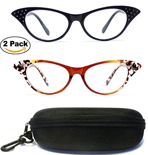 Vintage Retro Women Designer Fashion Cateyes Black Red Reading Glasses Readers Hard Case