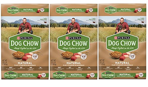 Scoop a bowl of Purina Dog Chow Natural Plus Vitamins & Minerals Adult With Real Chicken & Beef dry dog food, and feed your dog with confidence knowing that he's getting a natural recipe that provides the 100% complete and balanced nutrition he needs to help him live a long and healthy life. Made with real beef and farm-raised chicken, this great-tasting Purina dry dog food containing 25% protein for strong muscles supports your best friend's overall health. Purina Dog Chow Natural Plus Vitamins & Minerals Adult With Real Chicken & Beef is made without artificial flavors, colors or preservatives, so you can feed it to him every day proudly knowing that he's getting the essential nutrition he deserves. This dry food has a crunchy consistency and a taste that adult dogs love. That's part of the reason we spend so much time carefully crafting it and feed it to our own dogs. So show your dog just how much you care by feeding him a meal made for our dogs and yours.