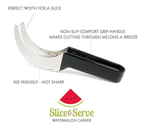 SAVE TIME AND MONEY With a Slice & Serve watermelon slicer you'll cut up a watermelon for fruit salads or a smoothie in half the time. It’s so easy to use, you won’t be tempted to buy pre-cut melon chunks in the grocery store.