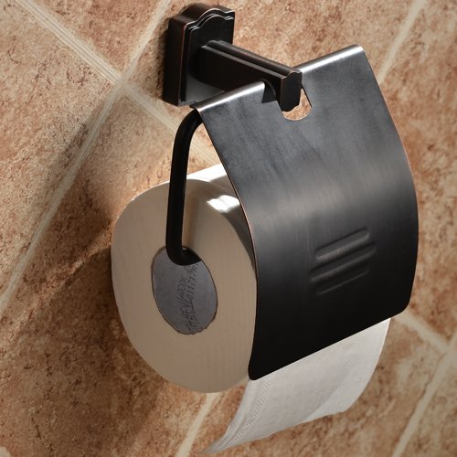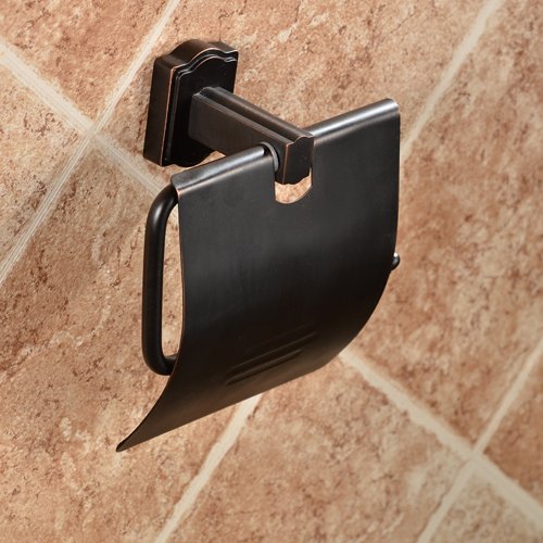 Wall Mount Solid Brass Toilet Roll Paper Holder with Cover Single Handle Bathroom Accessory Toilet Tissue Holder Oil Rubbed Bronze Finish