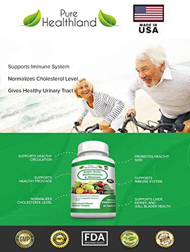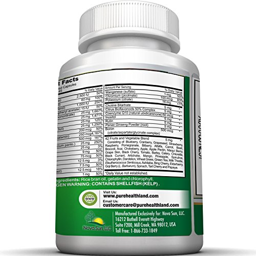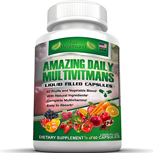 -. Feature : ✔DAILY MULTIVITAMIN supplement in liquid-filled capsules format by Pure Healthland for men, women over 50 and seniors is a 5-star high potency, high quality multivitamins, one of the best food based multivitamin in liquid-filled capsules format on the market. / ✔POMEGRANATE - support your healthy circulation; GREEN TEA - more support for your immune system; APPLE - support for your immune system and lungs; BLUEBERRY - support for your immune system and urinary tract; CRANBERRY - support for your urinary tract and cardiovascular system; GRAPE SEED - support your healthy circulation and cholesterol level.... / ✔Customers feedback - "The people who own and run this company are very attentive to their customers since it is a small family run business. I really like knowing that I'm not dealing with a large corporation but with people like me who are concerned with their health and are doing their best to bring us a great food based vitamin & mineral supplement." / ✔FAST SHIPPING directly from warehouses to you plus 5-Star Customer Service. A Great Gift for You and Your Loved Ones! We manufacture in FDA-Registered & Inspected, GMP-certified facility in USA. Top Quality. 60-DAY Hassle Free 100% MONEY BACK GUARANTEE - You have zero risk to try our awesome product. If you are not completely satisfied within 60 days after purchase, you get you money back. Just click "Add to Cart" now to give it a try. / ✔EASY TO ABSORB 42 FRUIT AND VEGETABLE PROP.R.IETARY BLEND CONSISTING OF Blueberry, Cranberry, Grapeseed, Strawberry, Raspberry, Pomegranate, Bilberry, Alfalfa, Carrot, Beet, Broccoli, Acai, Chokeberry, Apple, Apple Pectin, Maqui Berry, Grape Skin, Black Cherry, Tomato, Barley, Celery, Chlorella, Black Currant, Artichoke, Mango, Pineapple, Spirulina, Chlorophyllin, Dandelion, Wheat Grass, Green Tea, Milk Thistle, Eleutherococcus Senticosus, Ashitaba, Bing Cherry, Elderberry, Goji Berry (L. Barbarum), Spinach, Tart Cherry and Papaya.