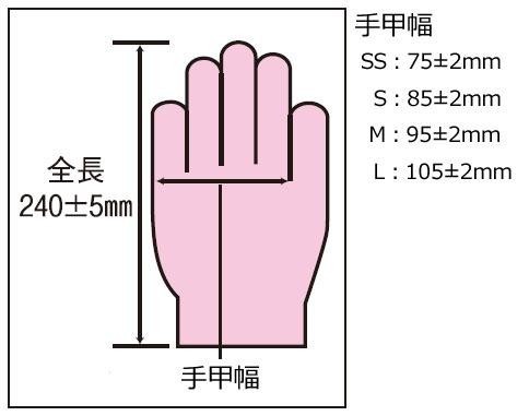 | 仕様 | パウダー無し 未滅菌 ASTM・D6319規格適合品 食品衛生法適合品 |