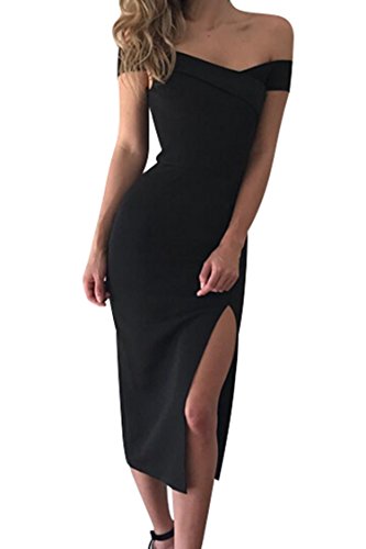 Pink Queen Women's Solid Tunic Off Shoulder Split Club Bodycon Dress We have S size,M size,L size,XL size for the dress,size details as following: S:Bust:33.46" Waist:25.20" Length:39.37"