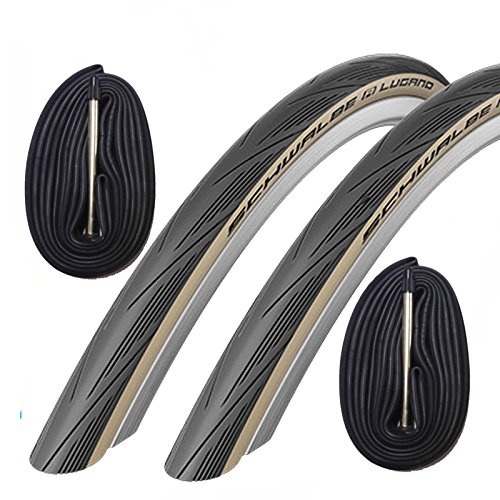 -. Title : Schwalbe Lugano 700 x 25c Road Bike Tires with 60mm Presta Tubes - Beige (Pair)