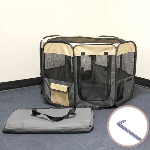 Studio : LoongStar Publisher : LoongStar Binding : Misc. Product Description Our soft pet playpen offers pets both the comfort and security they need and the freedom they deserve. Our soft pet playpen is constructed with a strong internal steel frame and durable 600 D oxford cloth.Uniquely crafted to meet your home and travel needs, because it sets up in seconds yet folds easily and stores in a carrying case.The bottom zipper designed to prevent escape and to protect your floors from accidental messes.The playpen can be used around the house to confine pets to a specific area, but is also great for play, exercise and house training. Features: Lightweight, durable and portable Sets up in seconds Uniquely designed to meet your home and travel needs Large 35" diameter - eight panel shell Strong internal steel frame Durable waterproof 600 D oxford cloth material, easy to clean 2 Zippered roll up doors for convenient access The bottom zipper designed to prevent escape Waterproof bottom protects your floors from accidental messes Mesh on all sides for air flow and visibility for your pets Attached band for holding a water feeder bottle (bottle not included) 2 Side storage bags for holding metal stakes, snacks, toys, or pet medications 4 Metal stakes for holding the pen on ground firmly (outside use) Carrying bag for easy storage and transportation Specifications: Brand New Color:Green. Blue .Pink .Gray .Red .Orange Material: 600 D oxford cloth, Mesh and Steel Playpen Diameters:35 " Diameter Panel Size : 21" x14" (LxW) Panel Quantity: 8 Package Weight: 7.06lbs Package Includes: 1 x Playpen 1 x Mesh cover 1 x Bottom 4 x Metal stakes 1 x Carrying case 0
