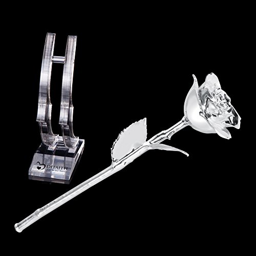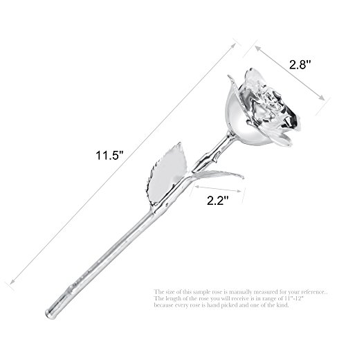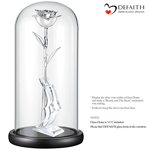 How DEFAITH® produce these Silver Rose Through a special process a real rose is dipped in high purity silver to preserve the rose's original stunning beauty. Each silver rose is preserved by hand through an extensive process.These specialty roses are chosen at the peak of their bloom. They then go through a lengthy series of steps that ensures that the breathtaking roses maintain their brilliant color and bloom.