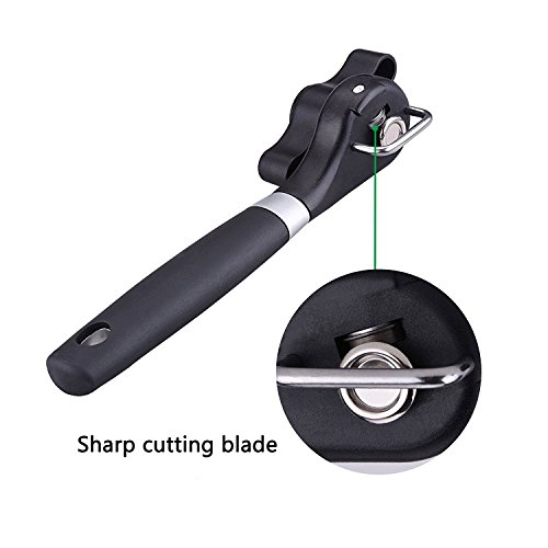 Smooth Edge Can Opener Stainless Steel Ergonomic Anti Slip Manual Can Opener (Black) Sharp Easy Turn Design with Good Soft Grips Handle for kitchen Restaurant