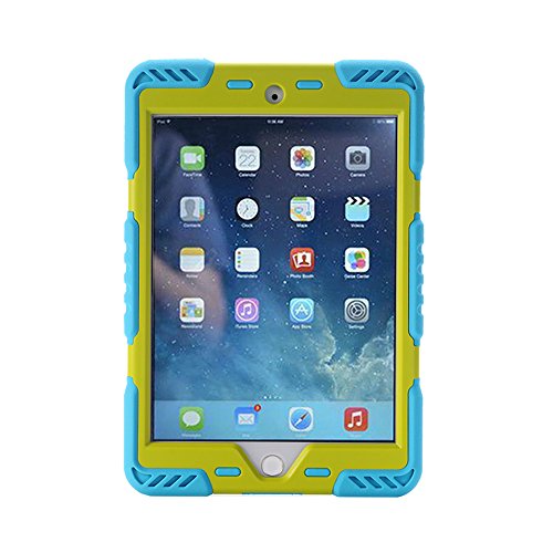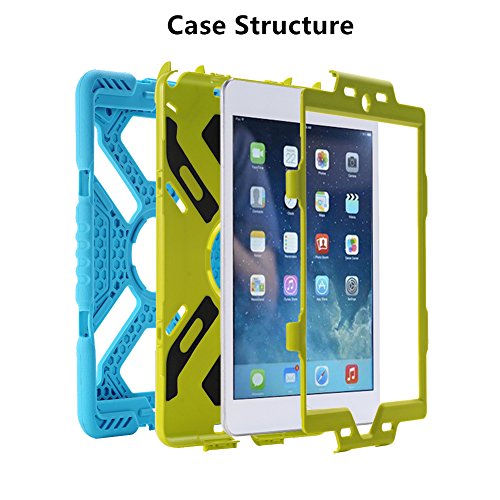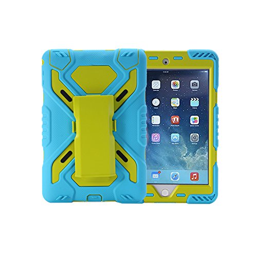 Ipad Mini 4 Case, Meiya Newest Miltary Heavy Duty Shockproof Water Resistant Case Shell for Ipad Mini 4, Full Protection Light Weight Kickstand Children Kid Ipad Mini 4 Case Gift (BLUE+GREEN)