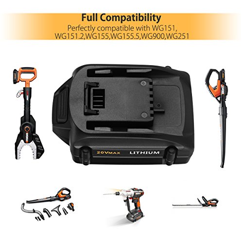 Powerextra 20 Volt MAX 4.0Ah WA3520 Replacement Battery for WG151s, WG155s, WG251s, WG255s, WG540s, WG545s, WG890, WG891 Lithium Battery