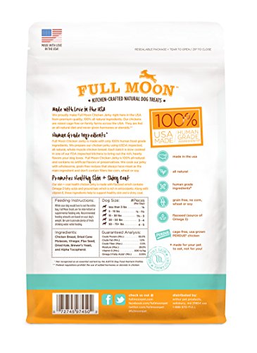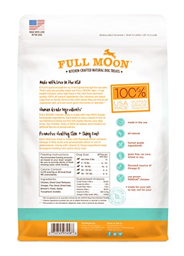 -. Binding : Misc. -. Brand : Full Moon -. Label : Full Moon -. Manufacturer : Full Moon -. PackageQuantity : 1 -. ProductGroup : Pet Products -. ProductTypeName : PET_SUPPLIES -. Publisher : Full Moon -. Studio : Full Moon -. Title : Full Moon All Natural Human Grade Dog Treats for Skin Plus Coat Health