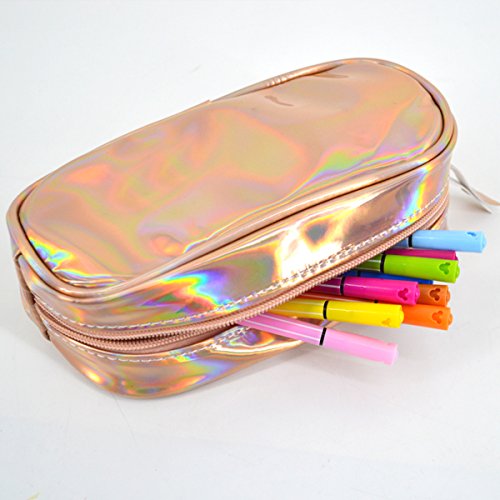 Monique Students Oversize Hologram Pen/Pencil Case Pencil Holder Boys Girls Stationery Pouch Women Cosmetic Bag Golden