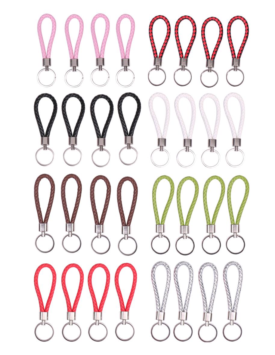 【32個セット】 キーリング 編込み レザー 皮 キーホルダー フェイク レザー 素材 金具 パーツ ストラップ mmk-k74【1~2日発送】