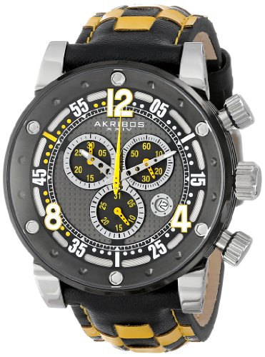 -. Title : Akribos XXIV Men's AK612YL Explorer Gunmetal-Tone Stainless Steel Watch with Woven Leather Strap