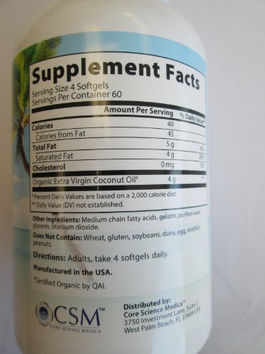 -. Title : Coconut Oil Organic Extra Virgin, 1000 Mg Per Softgel, Dietary Supplement: 240 Softgels - Sms20