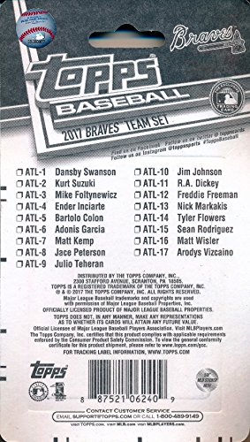 Atlanta Braves 2017 Topps Baseball EXCLUSIVE Special Limited Edition 17 Card Complete Team Set with Dansby Swanson, Freddie Freeman & Many More Stars & Rookies! Shipped in Bubble Mailer! WOWZZER!