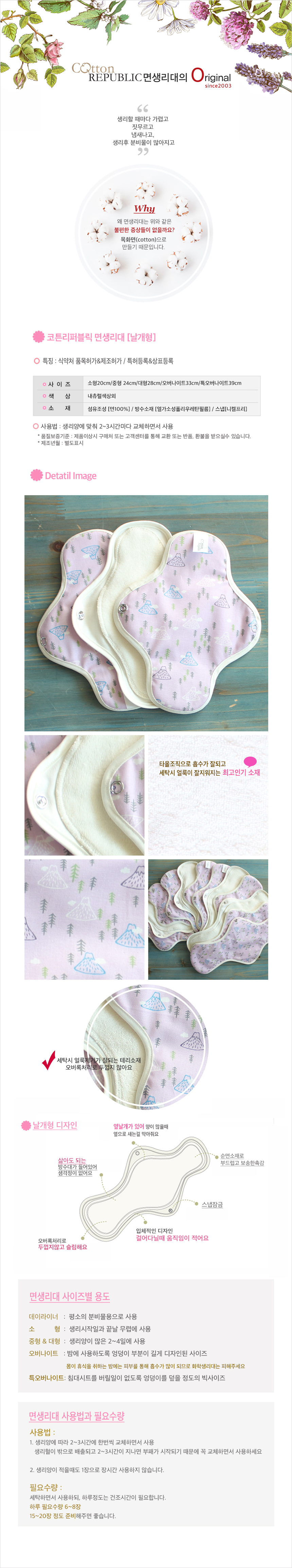 순면 날개형 [힐링타임] 소형 3장세트