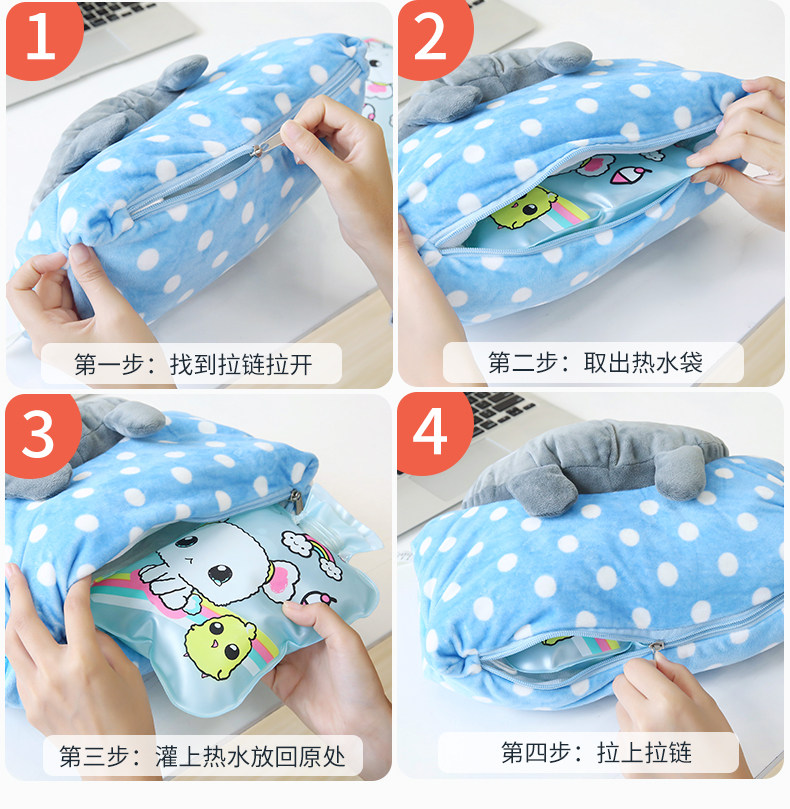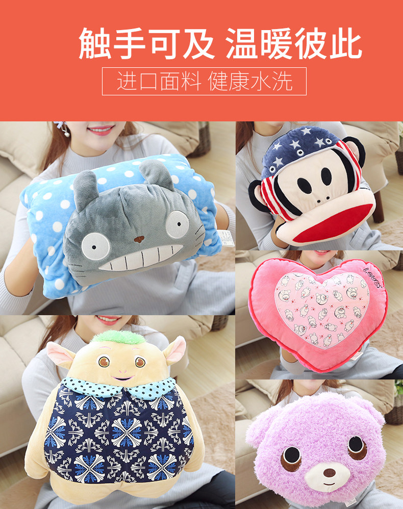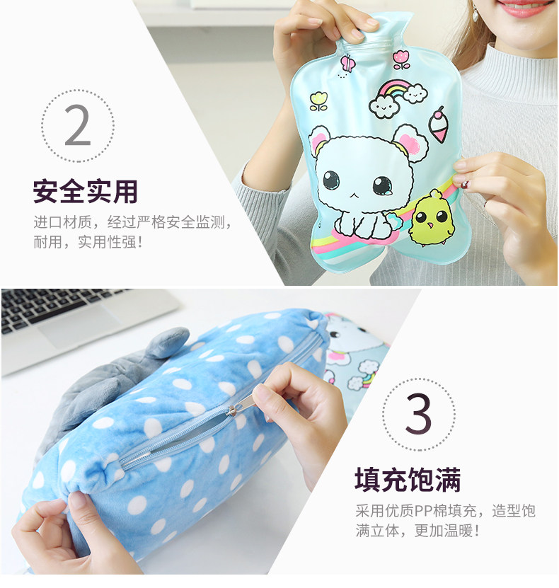 卡通灌水热水袋电暖宝暖手宝暖宫暖腰宝双插手毛绒防爆注水暖水袋