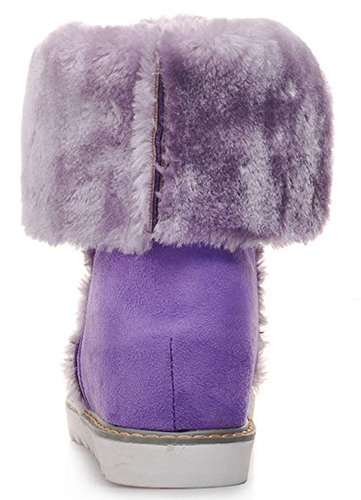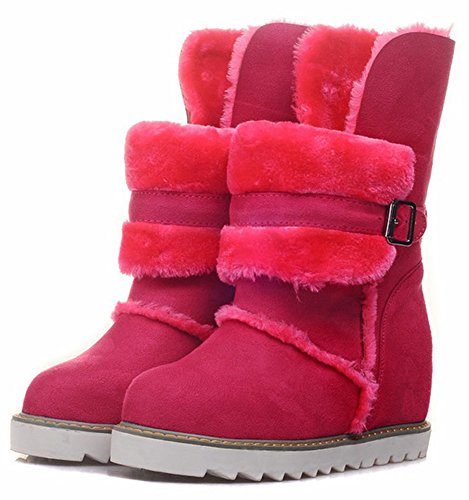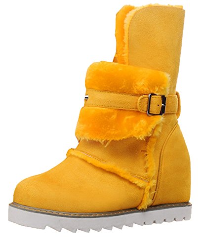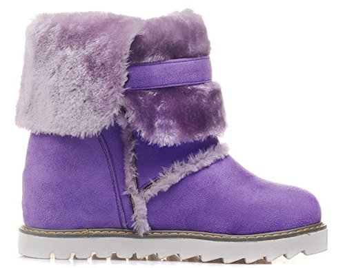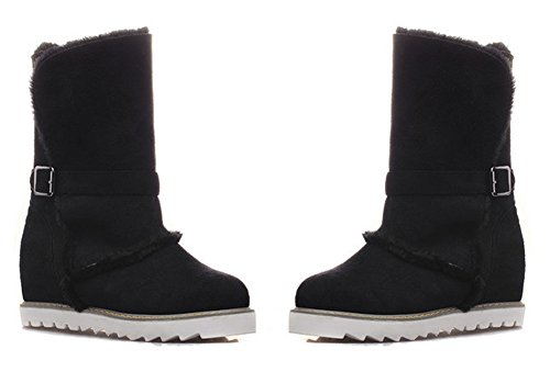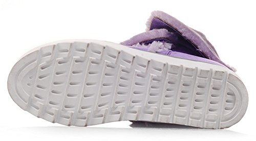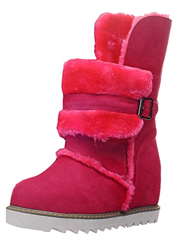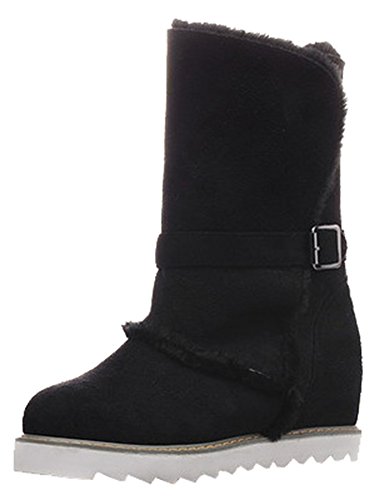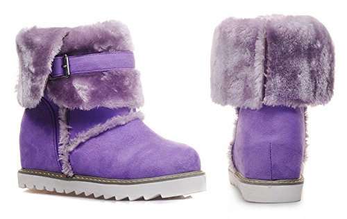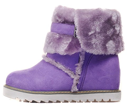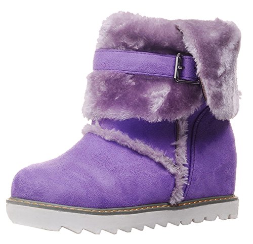 Binding : Apparel Product Description This pair of shoes if for women, girls, juniors and young ladies. You will look casual and fashionable when wearing them. The heels measure 2.4 inches. You will feel comfy in their high block heels. This pair of shoes features solid waterproof microsuede upper and ankle high. The design of round toe will make you more cute. You will look chic in their decoration of fluffy fur and buckle. It's convenient for you to wear in their pull on closure. The sole is made of good rubber. You will feel comfortable in their soft bottom. They are of high quality and durable. 0