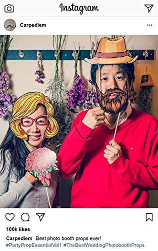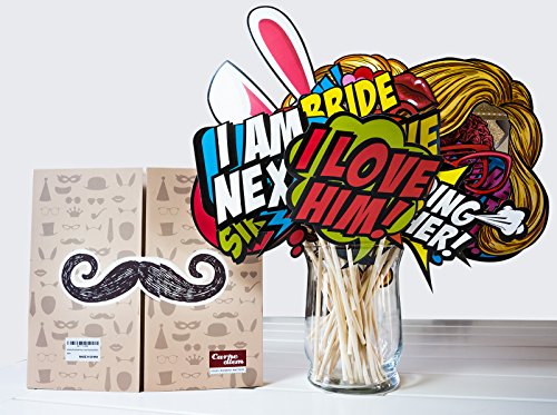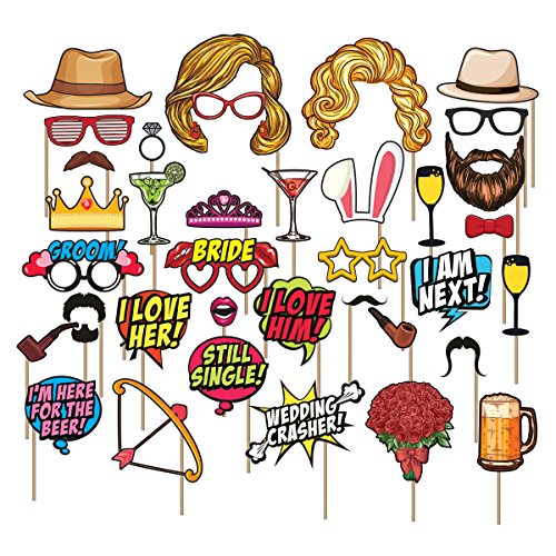 Wedding Photo Booth Props Kit - 38 Pieces with Wooden Sticks - Carpediem Party Prop Essential Vol.1