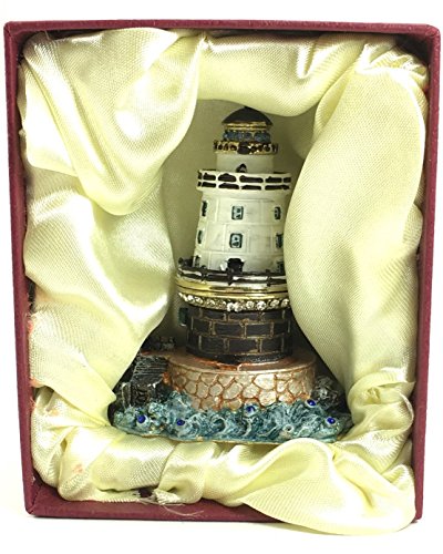 Enameled Lighthouse by the Sea Trinket Box by Kubla Craft, Accented with Crystals, 3.25"T