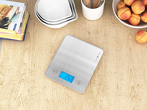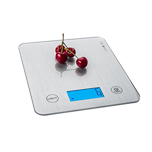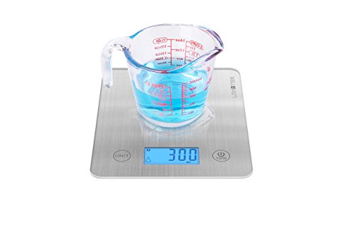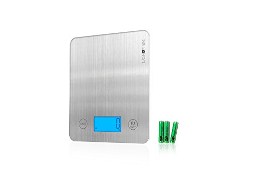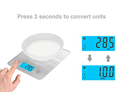 Studio : Longtek Trading Company, LLC Publisher : Longtek Trading Company, LLC Product Description *Equipped with high precision four strain gauge sensors system * Brushed metal design *Measure volume of liquids. ml / fl'oz *Low power/Over load indication *Manual on / Manual off / Auto off *Product weight: 202g *LCD size: 62*28mm *Capacity: 5KG/11LB /Division: 1g/0.1oz *Power:3 x AAA batteries 0