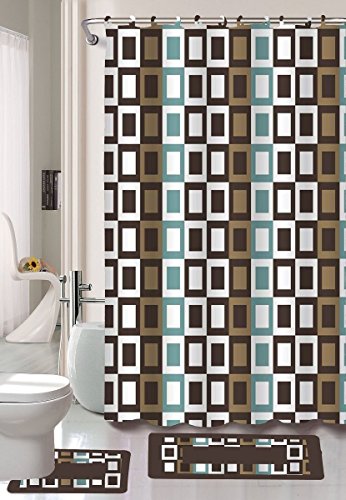 -. Title : Gorgeous Home *DIFFERENT COLORS* 15PC CHECKER DESIGNS BATHROOM BATH MATS SET RUG NON-SLIP CARPET SHOWER CURTAIN HOOKS
