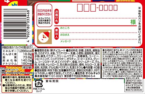原材料:砂糖、全粉乳、植物油脂、カカオマス、水飴、ココアバター、乳糖、小麦粉、脱脂粉乳、還元水飴、練乳パウダー、クリームパウダー、加糖練乳、コーヒー、ショートニング、ココアパウダー、ゼラチン、コーヒーエキス、クリーム、コーンスターチ、ホエイパウダー、食塩、クリームチーズ、でん粉、もち粉、トレハロース、乳化剤(大豆由来)、香料、セルロース、膨脹剤、光沢剤、ゲル化剤(ペクチン)、乳清ミネラル