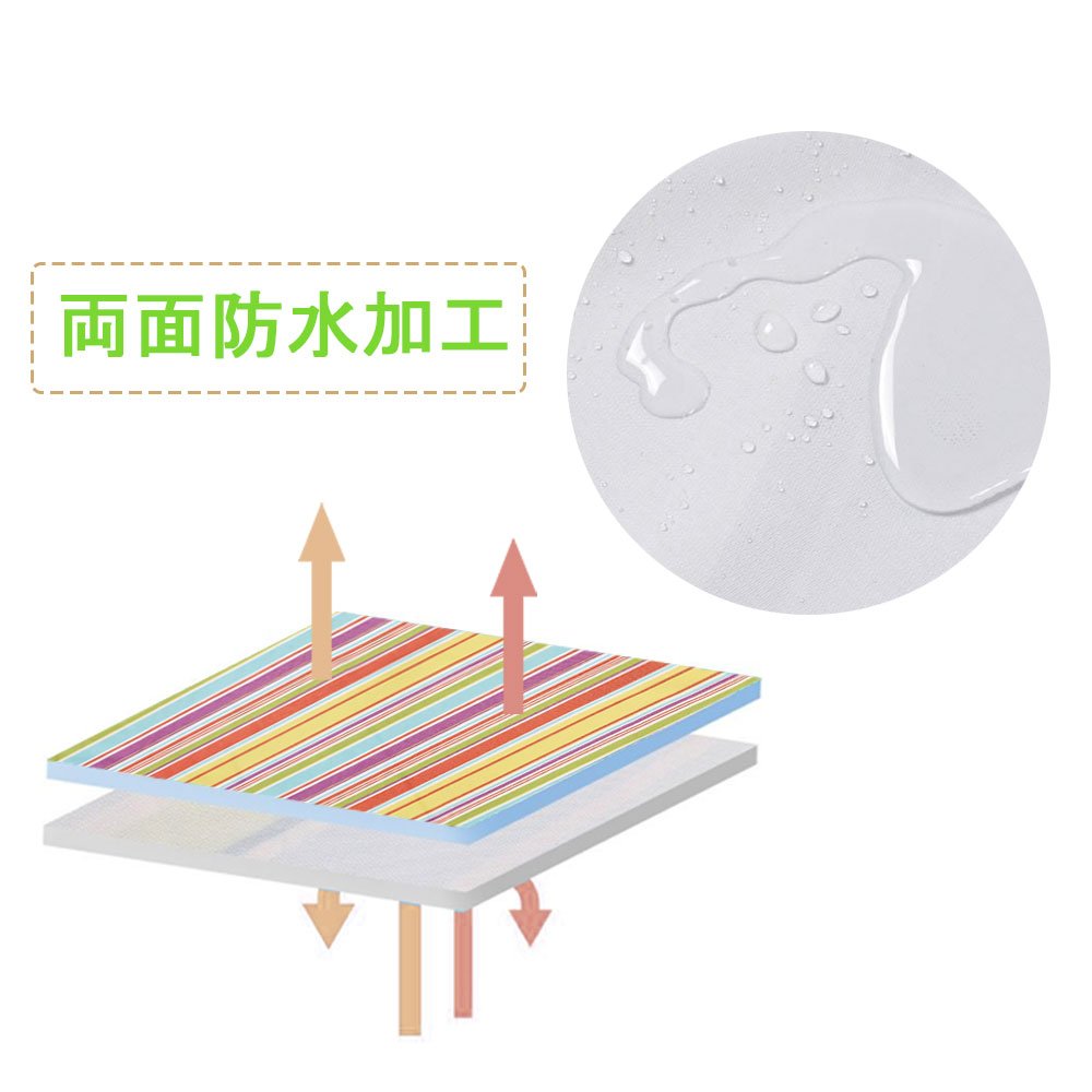 The reverse side is a silver waterproof PEVA material, so you can use it safely on damp lawn and ground.