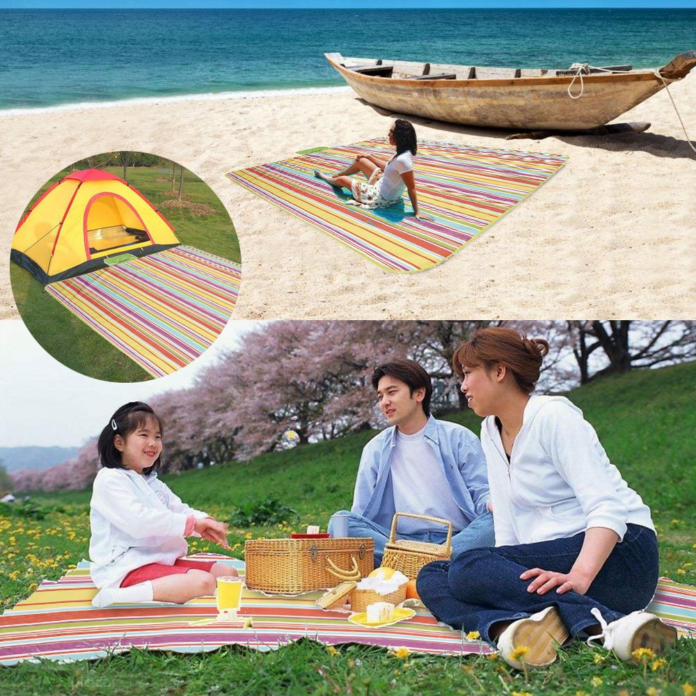 Please note: Oxford cloth is adopted, the thickness is about 1 mm, so we recommend you to lay it on lawn or sandy beach.