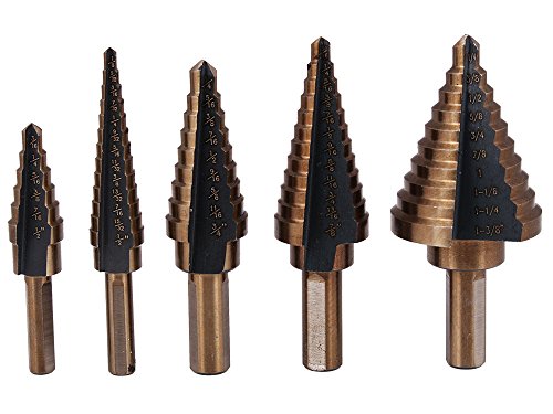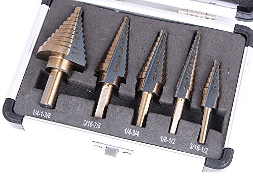 Agile-shop 5pcs Step Drill Bit Set Hss Cobalt Multiple Cut Hole 50 Sizes Step Drill Bit Set Tools W/ Aluminum Case