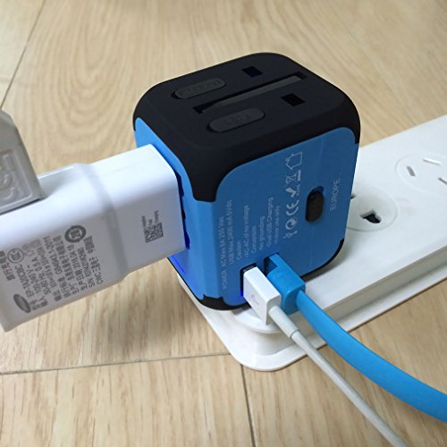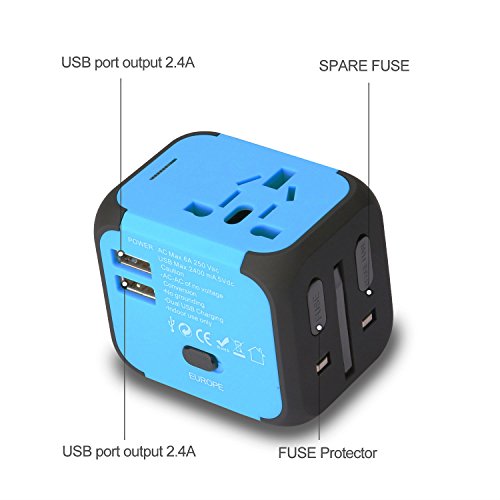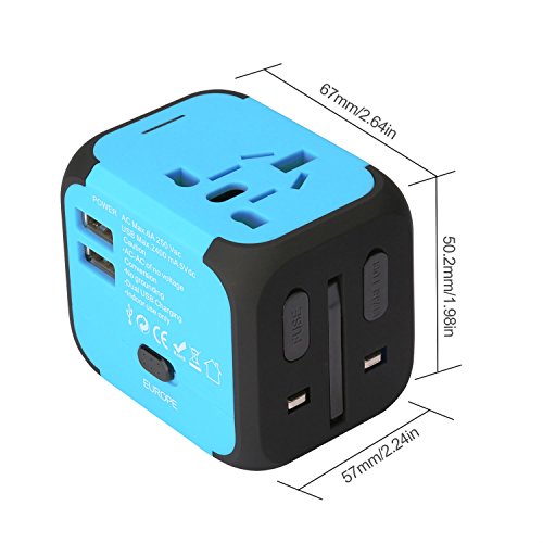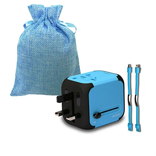 Bukey Travel Adapter, Worldwide All in One Universal Power Converters Wall AC Power Plug Adapter Power Plug Wall Charger with Dual USB Charging Ports for USA EU UK AU – USB Cable, Gift Pouch(Blue)
