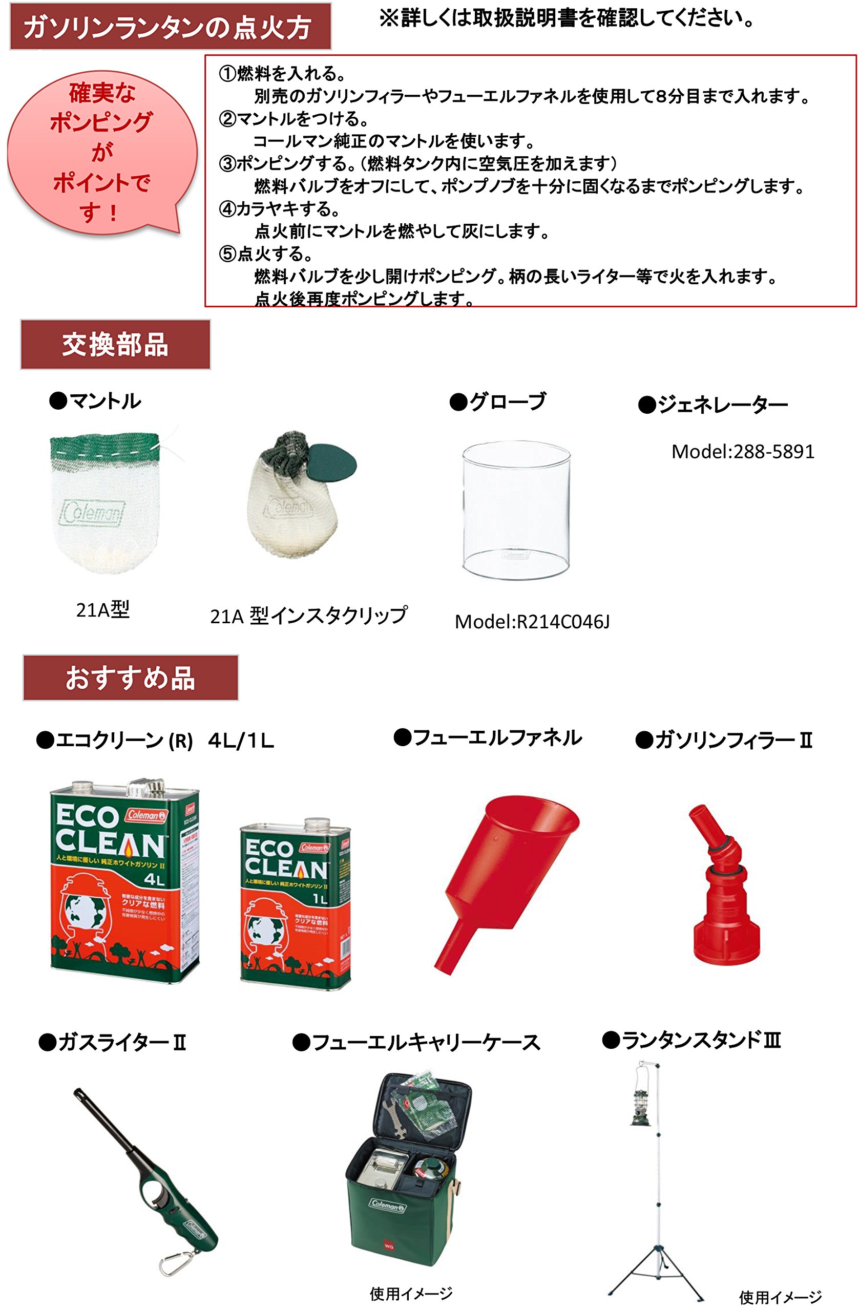 ● Gasoline Lantern: Excellent economy of about 40% fuel cost compared with LP gas lantern.