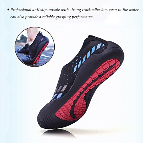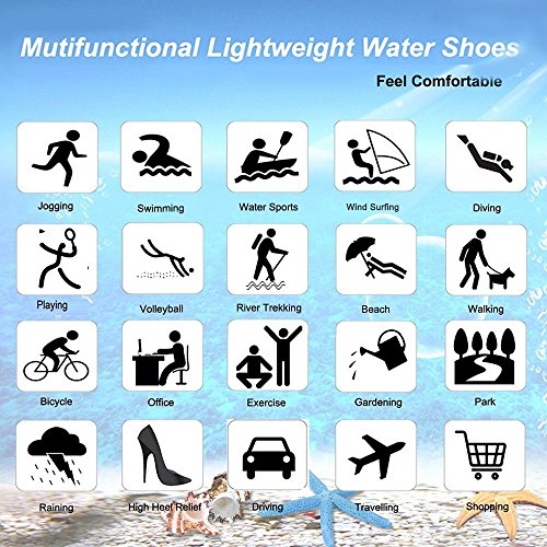 The shoes are a must have for your next sport. Whether you are doing water aerobics, kayaking, paddle boarding, canoeing, floating down rocky riverbeds, or walking shell-lined beaches, you'll want a pair of water shoes to protect your feet. Features: Multifunction: A multi purpose shoe.you can use the shoes as a water athletic shoe when you go out.Doing some exercises or traveling other country.Packing easily and portable easily because the walking shoes lightweight and Flexing.light weight aquatic shoe. Instead of having to pack two pairs of shoes one for travel and one for swimming you don't need add two shoes tin your luggage. travel light and multi-task with these "two-in-one" water/athletic shoes. OCCASION: You can use the shoes in many occasions,such as:water park,water class,cruise,hanging out,aqua zumba,aqua therapy,water park employees,waterfall hikes,etc.Take our shoes when you go to vacation.when you go to Hawaii,Mexico,Costa Rica ,Caribbean,Xplor Park,any famous place when you enjoy you free time. 0