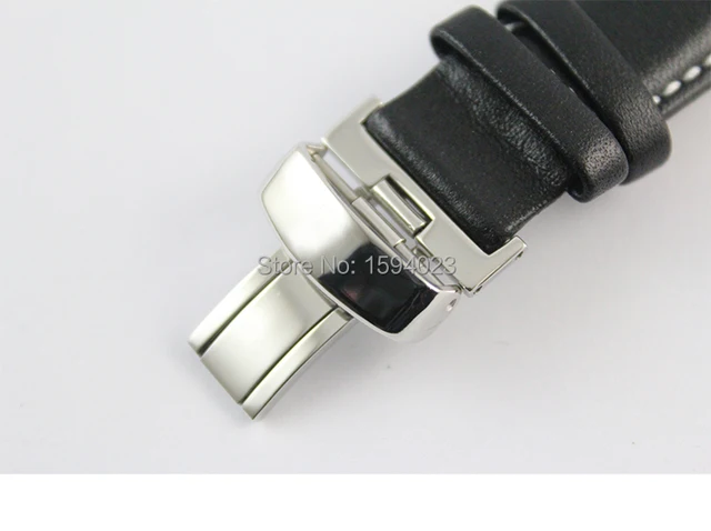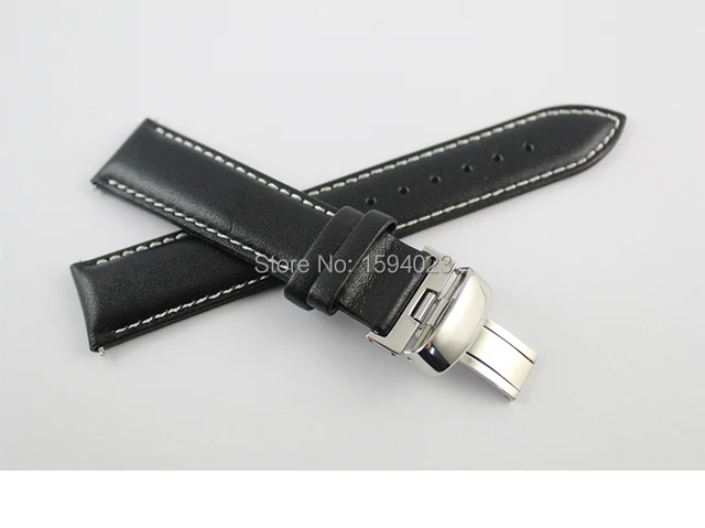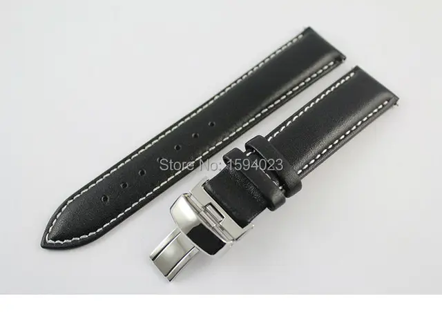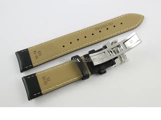 | [해외] 19 미리메터 (Buckle18mm) PRC200 T067417 높은 품질 실버 나비 버클 + 블랙 정품 가죽 시계 밴드 스트랩 남자 |