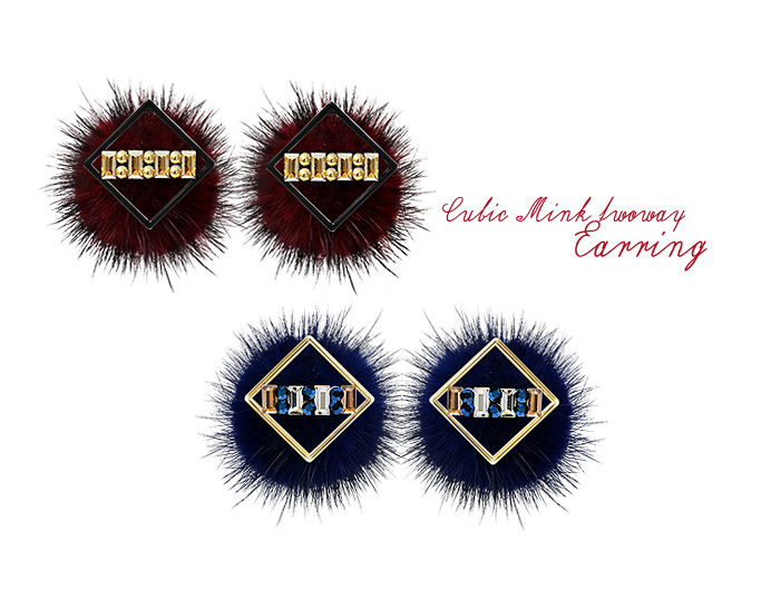 앞 뒤로 꽂는 투웨이 디자인으로 활용도가 좋은 큐빅 밍크 투웨이 귀걸이