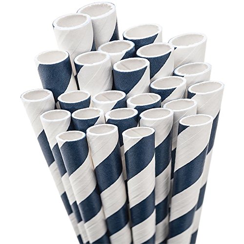 Aardvark Paper Straws Jumbo Straw Unwrapped Paper Product, 7.75-Inch, Navy Blue and White Striped