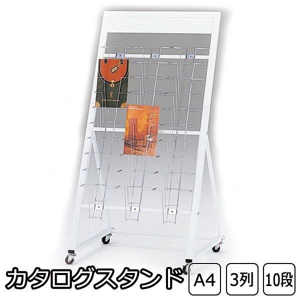 4輪キャスター付きのカタログスタンドです。 製造国:日本 素材・材質:スチール 商品サイズ:本体:W785×D560×H1500mm、ポケット内寸:W224×D17mm、上部プレートサイズ:W705×H100mm 仕様:3列10段対応カタログサイズ:A4(厚み17mmまで) 付属品:キャスター(ストッパーあり×2個、ストッパーなし×2個) ※サプライヤー直送品 ご注文後5~6営業日後の出荷となります【商品名】カタログスタンド A4 3列10段 42718***