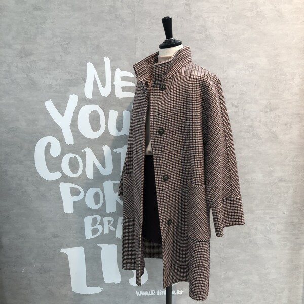 오버핏 실루엣에 빅 포켓이 포인트인 건 클렙 체크패턴의 핸드메이드 울코트입니다