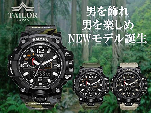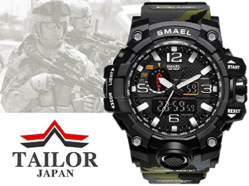 -. Title : 【TAILOR JAPAN】メンズ ミリタリー腕時計 メンズウォッチ 防水 デュアルコア アナログ デジタル SMAEL アウトドア スポーツ サバゲー