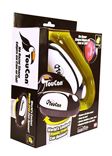 - One touch electric can opener opens cans of all shapes and sizes with just the push of a button