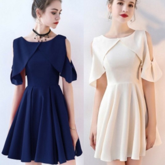 ワンピース ミニ丈 パーティードレス イブニングドレス 肩開き エレガント 大人 可愛い フレア お呼ばれ デート 上品 可愛い drgz0778