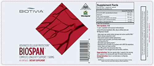 - Title : Bio Span - Anti-aging Formula. Resveratrol + Silymarin + Astragalus + Curcumin. Can Activate Sirt Longevity Gene and Promote Healthy Telomere Function. 60 Vegetarian Capsules. Two Months Supply.