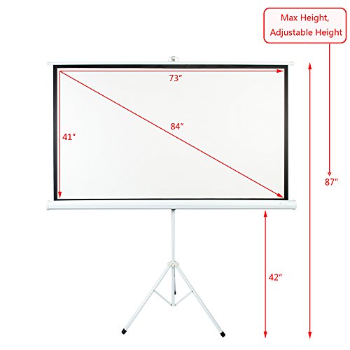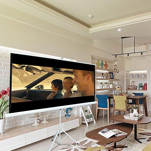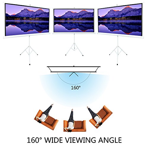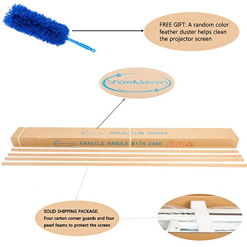 Studio : ShowMaven Publisher : ShowMaven Binding : Electronics Product Description The brand, Showmaven, tripod projector screen endeavors to become an expert or maven in show, display field. US Stock, fast delivery. Shipping by USPS, FEDEX AND UPS. This tripod projector screen features perfect image effect, easy installation, lightweight, odorless, wrinkle-free, steady, durable. Because we are using 300D matte white screen fabric and high quality tripod stand instead of 150D screen that other sellers commonly use. Features: 1. Ideal for home theater movies, classroom training, conference room presentations, public display, etc. 2. Washable surface with water and keep clean 3. Portable steady tripod installation design, convenient for setting up 4. 16:9 screen format and diagonal 80" offers 70"x39" viewing area 5. High contrast 1.3 gain screen optimizes picture quality 6. Matte white viewing surface diffuses projected light uniformly 7. 4-side black masking borders increase picture focus contrast 8. Black-backed screen material eliminates light penetration 9. Screen surface could wipe with mild soap or water 10. Lightweight steel white housing for easy installation Specifications: 1. Optical Technology: 1 2. Operation Type: Tripod 3. Screen Fabric Color: Matte White 4. Viewing Area (W x H): 70"x39" 5. Diagonal: 80" 6. Material: Steel PVC Fabric 7. Aspect Ratio: 16:9 8. Gain: 1.3 9. Viewing Angle: 160 Degrees Package Includes: 1 x 80" Tripod Projector Screen 1 x Instruction 1 x Tripod Stand 1 x Duster