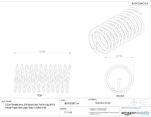 E-Z Lok Threaded Insert, 18-8 Stainless Steel, Helical, M3-0.5 Internal Threads, 6mm Length (Pack of 10)