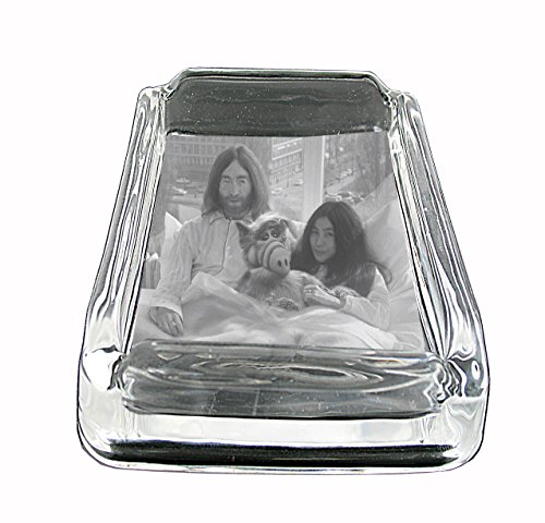 -. Title : John, Yoko and ALF Funny Weird Glass Square Ashtray