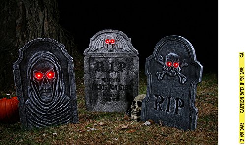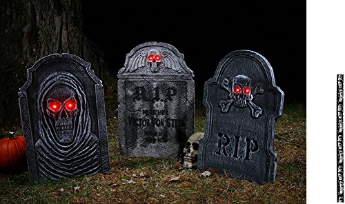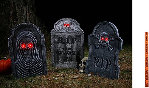 Bundle: 4 Items - Set of 3 22" Light-Up Tombstones and FREE Caution Tape Chosen at Random
