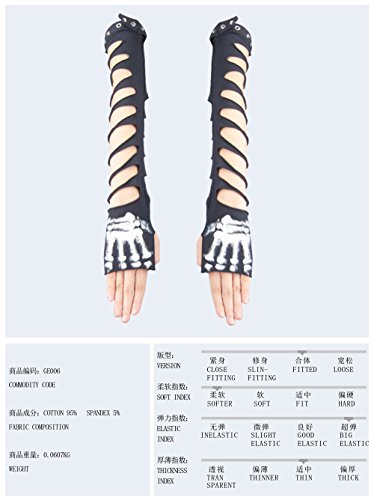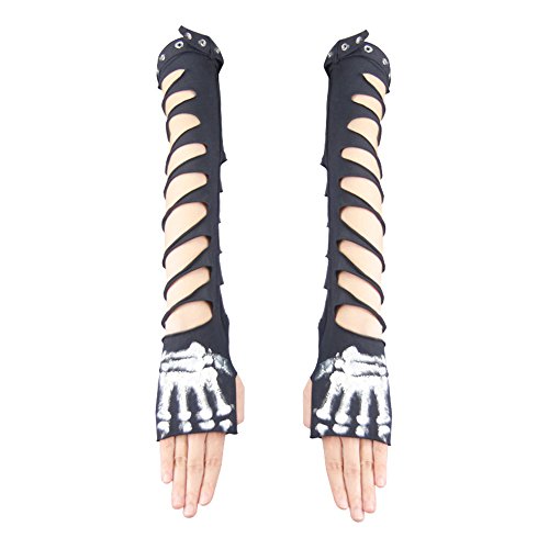 Gothic Punk Gothic Fingerless Gloves Skeleton Long Arm Black Dress Gloves for Women