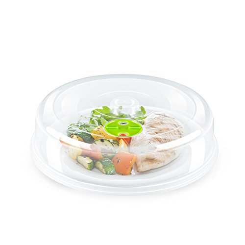The microwave dish cover is tall enough to not touch your food. Our microwave splash cover comes with vented top to open to release steam and close to keep food warm